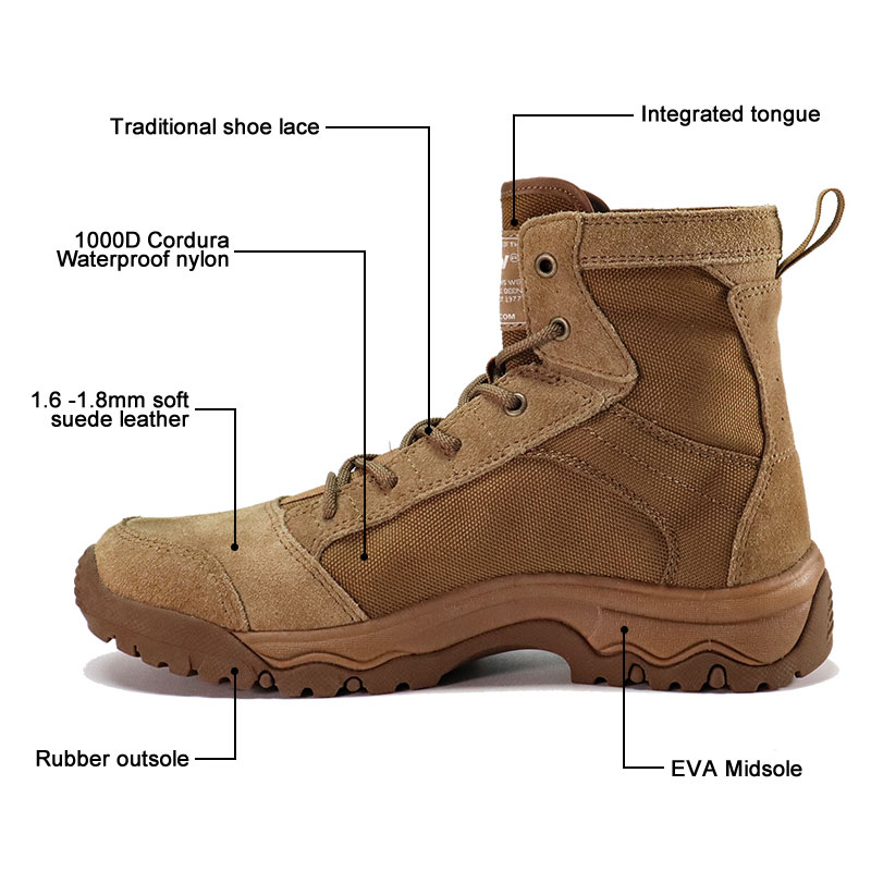 From rocky wadis to loose sand dunes, the Cordura Fabric Rubber Desert Tactical Boots are engineered to perform. The durable Cordura upper resists wear and tear while keeping weight down, and the multi-directional rubber outsole provides steady footing on unpredictable desert surfaces.Send us inquiry for further information.