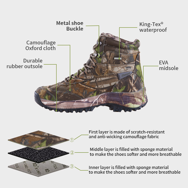 These Kingtex Waterproof Membrane Hunting Boots are in stock and ready to ship, with orders starting from just 10 pairs. For more details or pricing inquiries, feel free to reach out anytime. Customization is also available with a minimum order of 800 pairs.And this model has the following advantages: