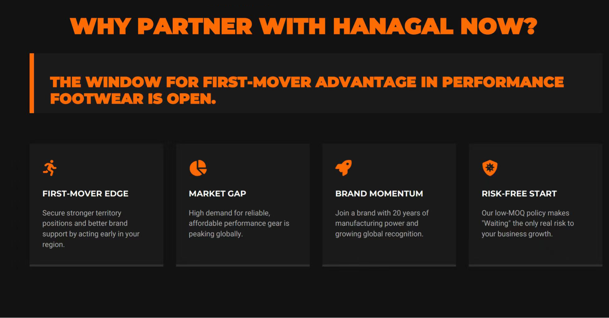 The outdoor footwear market is moving fast. With Hanagal’s 23year foundation, lowrisk entry, and partnerfirst approach, there has never been a better time to take your position. See you at Booth 2.2L2728.