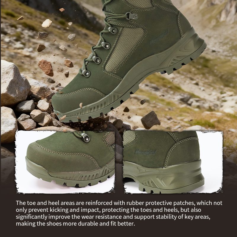 The toe and heel are reinforced with rubber patches. That means better protection against kicks and impacts, plus extra durability and support where you need it most.